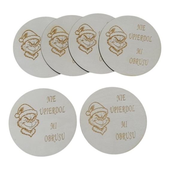 Podkładki pod kubek 10 cm – z humorem / grawer „Nie upierdol mi obrusu”