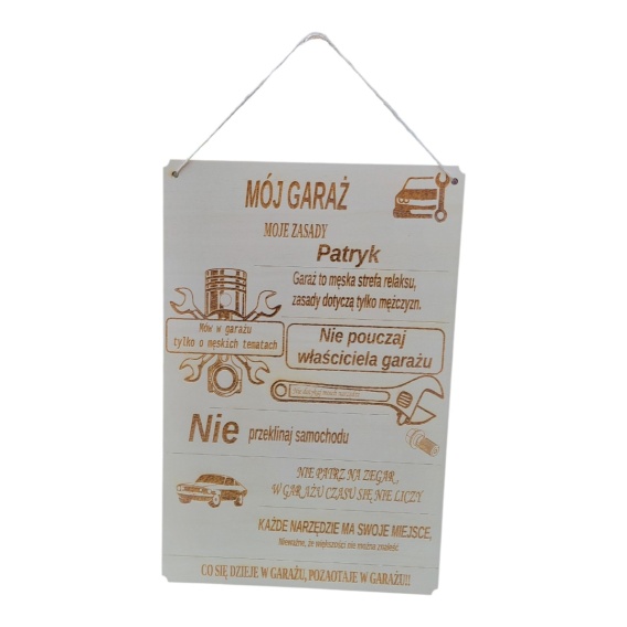 Drewniana tabliczka z wygrawerowanym napisem „Mój Garaż – Moje Zasady” to idealny dodatek do każdego warsztatu czy garażu. Świetnie sprawdzi się jako prezent dla miłośnika motoryzacji, majsterkowicza czy właściciela własnej "męskiej strefy".