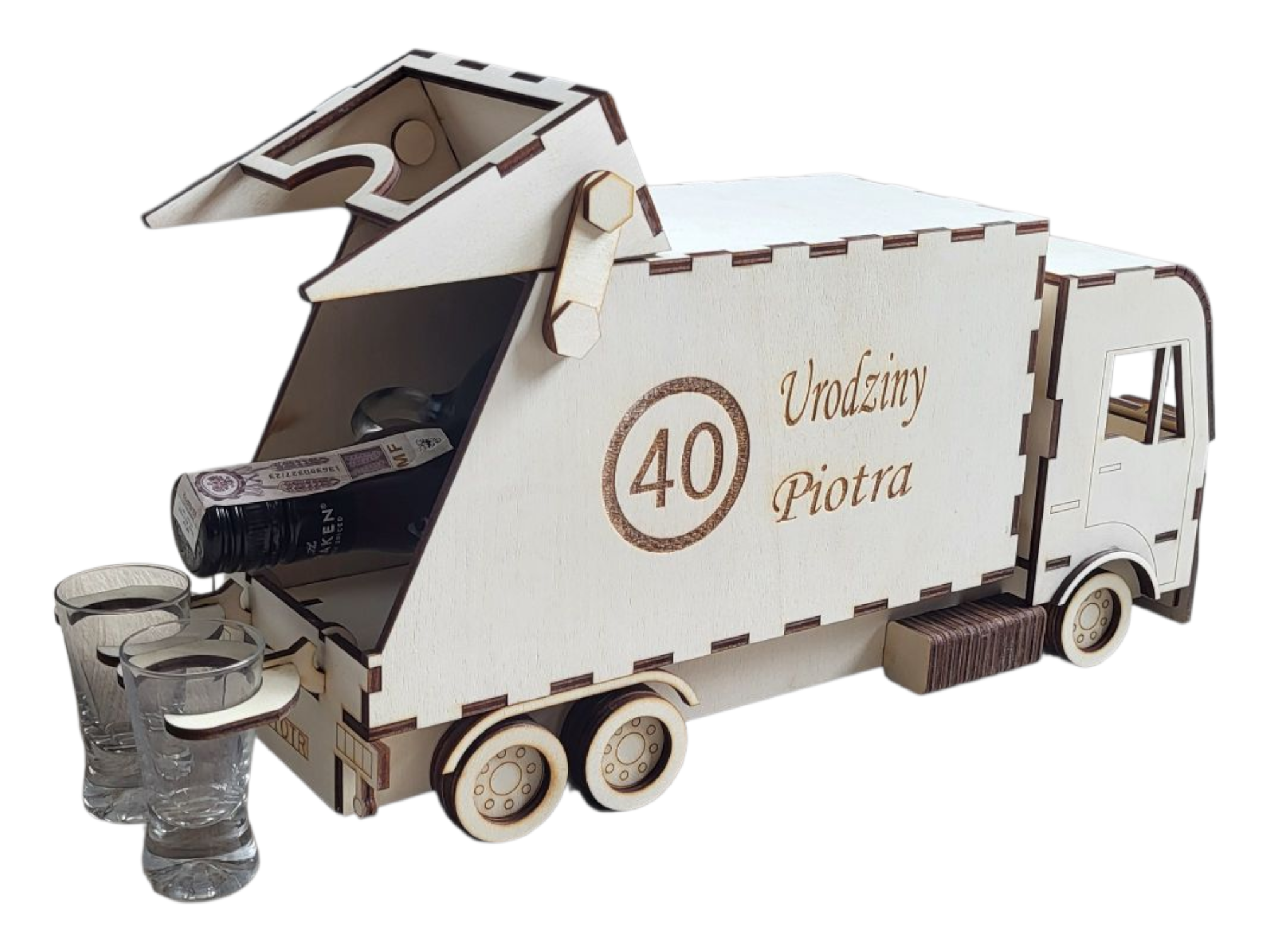 Dlaczego warto kupić model śmieciarki jako pudełko na alkohol od PSArt.Laser?